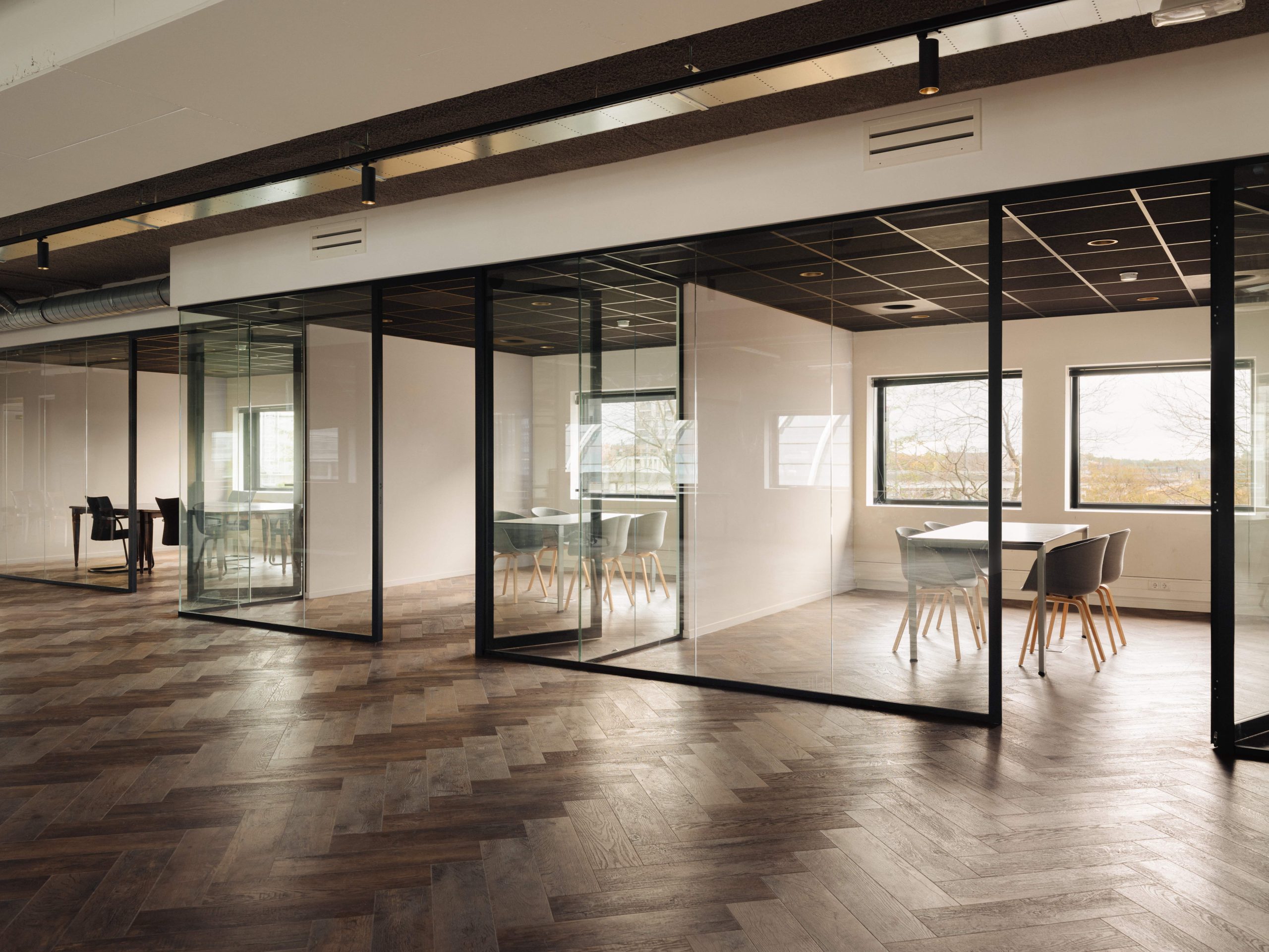 Op de 2e verdieping is circa 695 m² v.v.o. hoogwaardige, turn-key kantoorruimte beschikbaar. De ruimte is flexibel indeelbaar en voorzien van een stijlvolle inrichting, inclusief bar, royale pantry en meerdere interne vergaderruimtes.